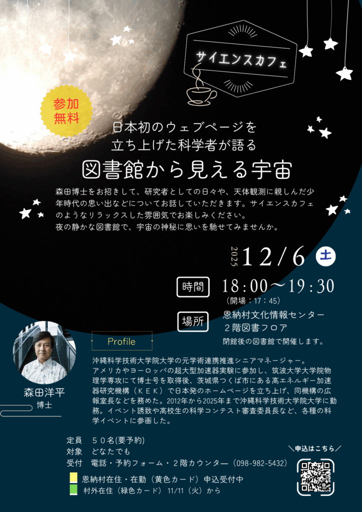森田博士をお招きして、研究者としての日々や、天体観測に親しんだ少年時代の