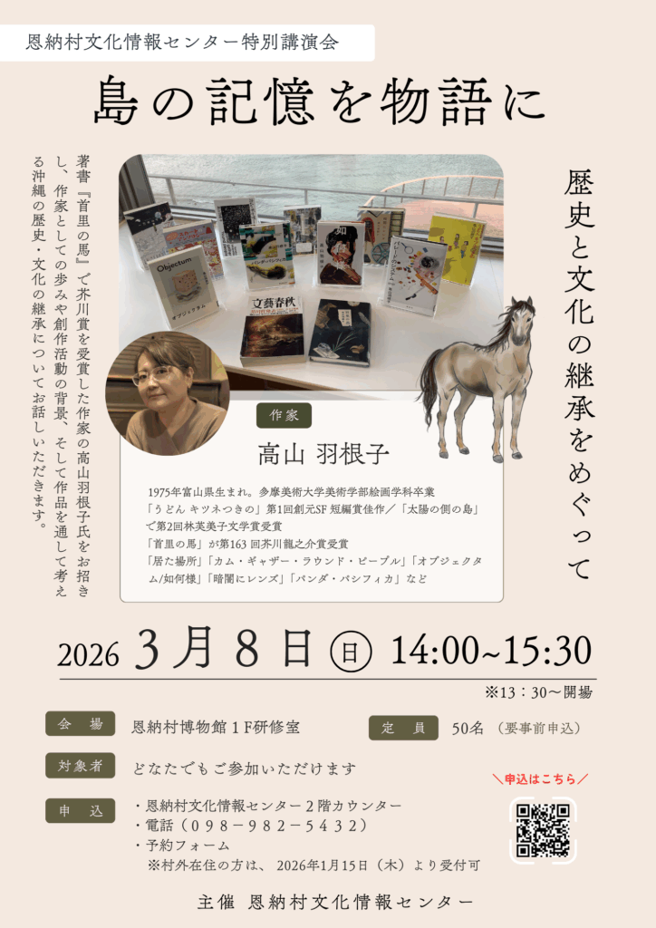 著書『首里の馬』で芥川賞を受賞した作家の高山羽根子氏をお招きし、