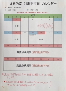 2月は下記の日程で多目的室を利用できませんので、ご了承ください。
