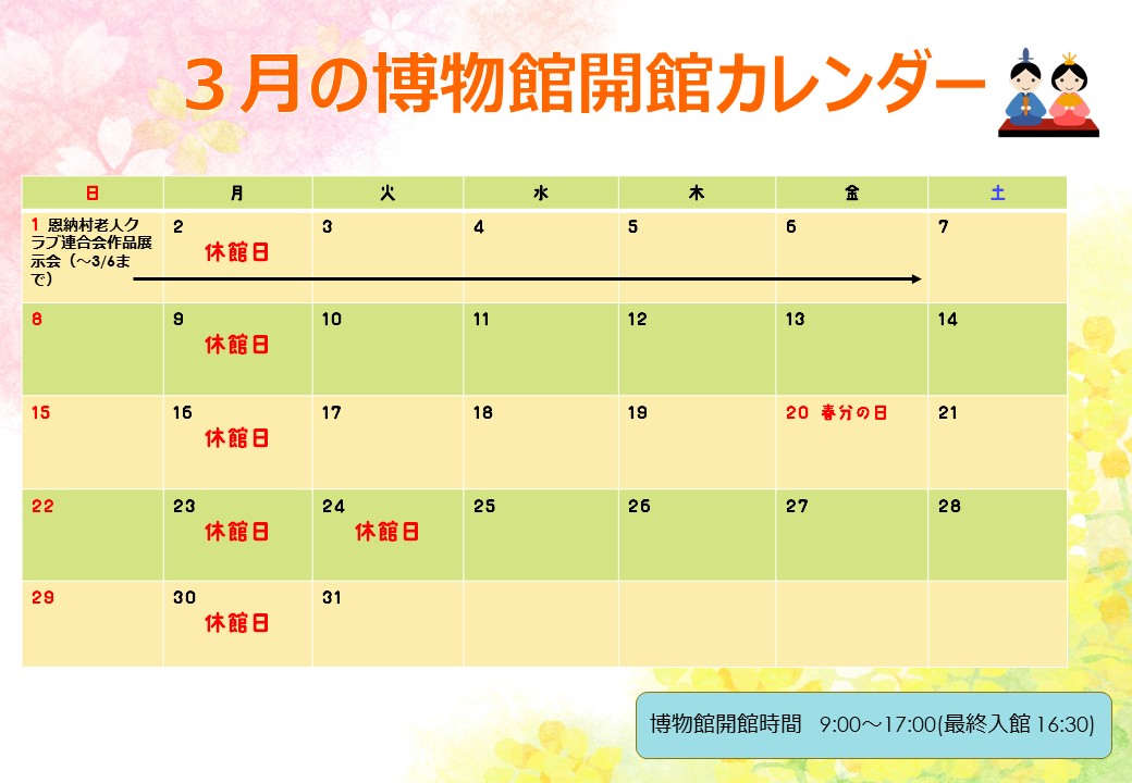 3月24日(火)は3月20日(金)春分の日の公休日開館の振替えとして休館となります。